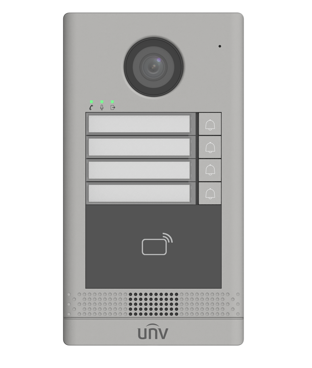 Стандартный PoE/ 12В DC, IC считыватель; Хранилище: 10000 карт, Встроенный микрофон и динамик, PoE, 1 RS485 интерфейс, 1 Wiegand, 2 реле, 4 тревожных входа, IP65, IK08 -40°C ~ 60°C, Поддержка приложения UNV-Link