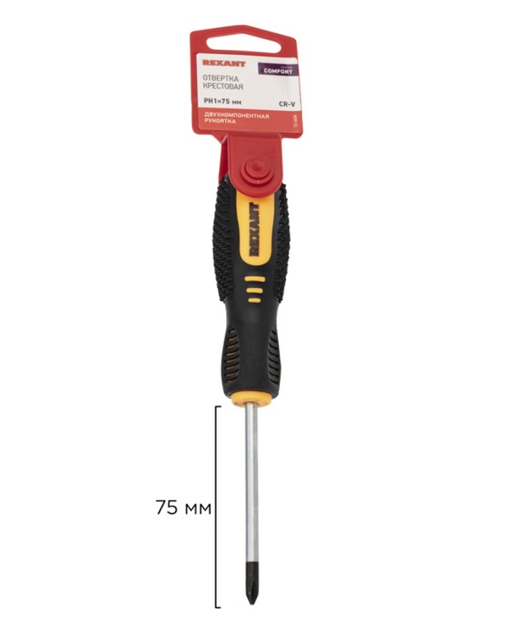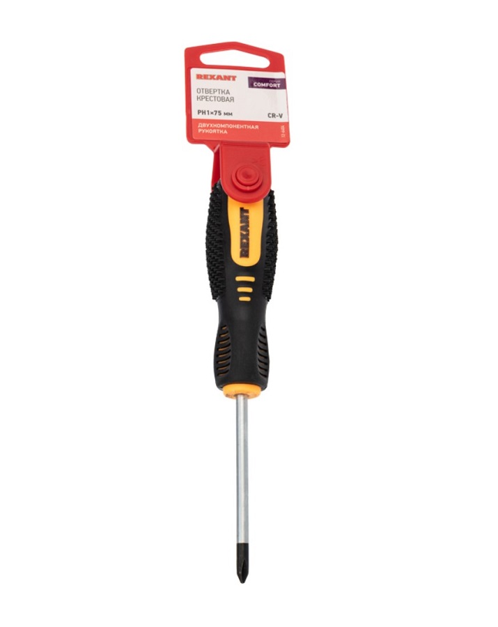 —Отвертка крестовая PH 1х75 мм, двухкомпонентная рукоятка REXANT