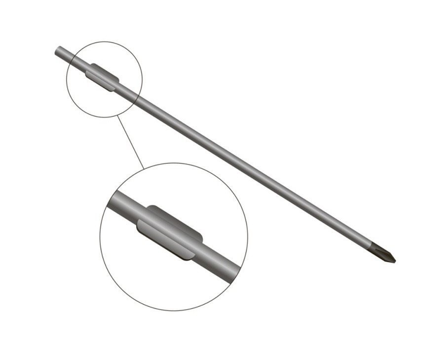 Отвертка обладает эргономичной двухкомпонентной рукояткой, которая предотвращает скольжение в ладони и обеспечивает более комфортную работу. В основании изделия предусмотрено отверстие для его подвеса.