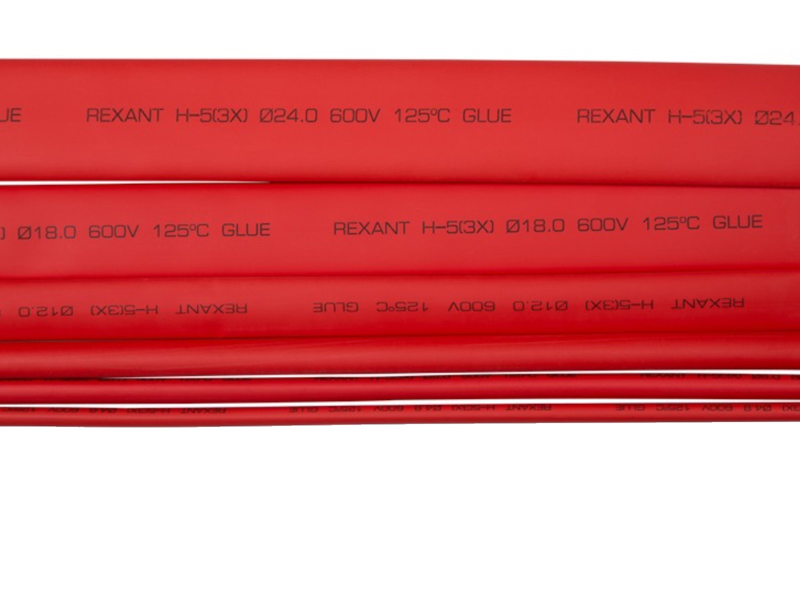 Термоусадочная трубка клеевая REXANT 24,0/8,0 мм, красная, упаковка 5 шт. по 1 м