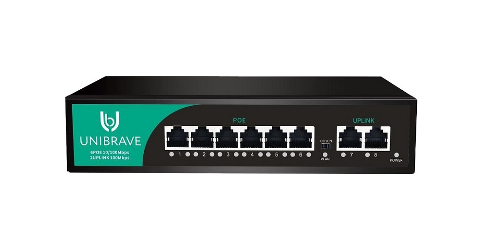 Неуправляемый сетевой PoE-коммутатор с 6 PoE-портами 10/100 Мбит/с, 2 Uplink-портами 10/100 Мбит/с.