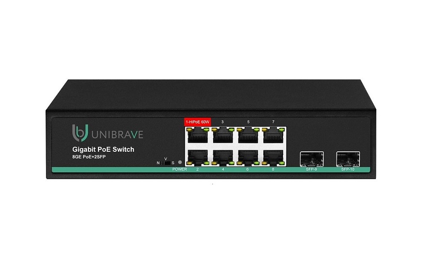 Гигабитный неуправляемый коммутатор Unibrave с 8 PoE-портами 10/100/1000 Мбит/с, 2 SFP-портами 1000 M.
