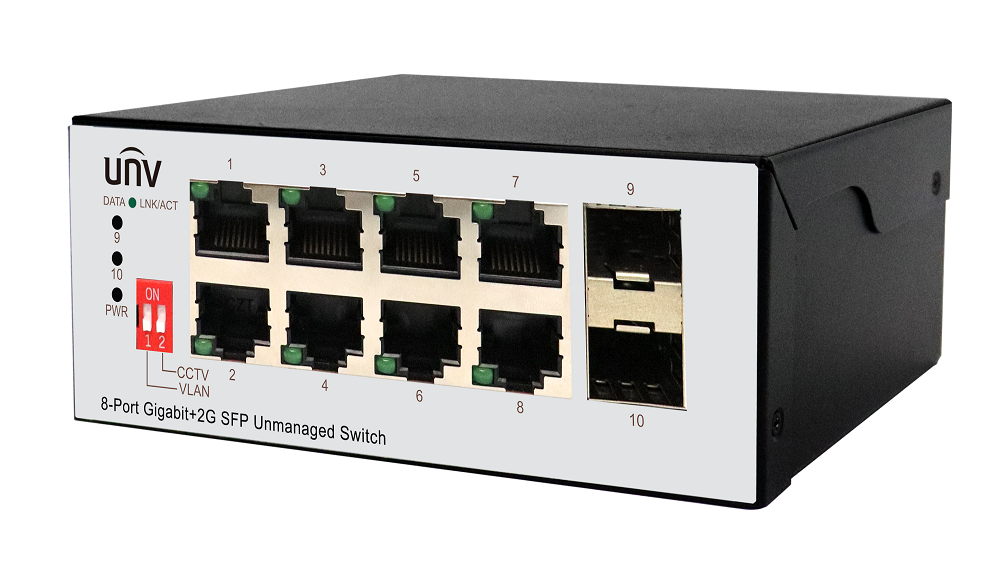 8 сетевых портов×1000Mbps (RJ45)+2×1000Mbps Fiber(SFP) порта, VLAN,