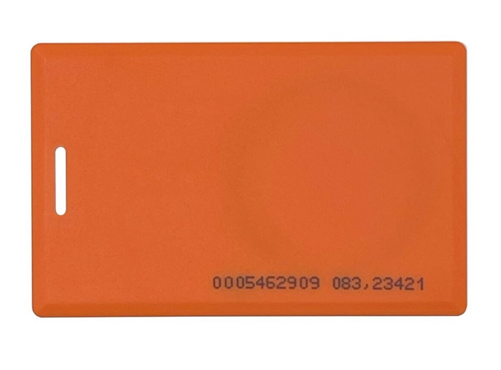 Карта EM-Marine, 125 кГц, c прорезью для крепления, с номером на карте, материал: ABS, 86х54х1.6, цвет оранжевый.