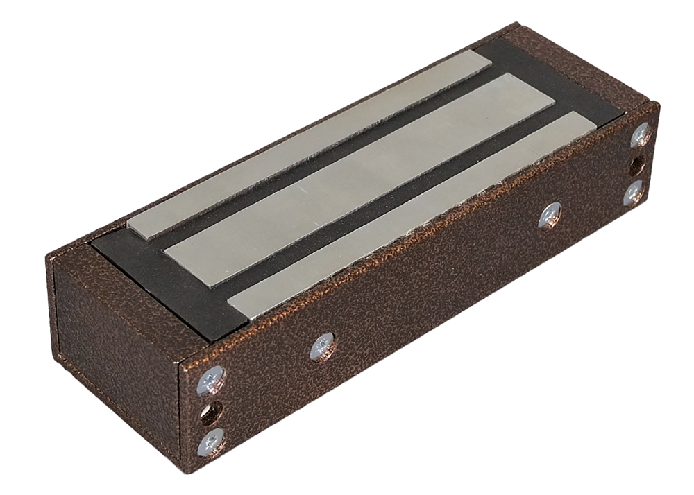 TS-ML400-RU1 (медный антик) Замок электромагнитный, 400 кг, 12В/400мА пост.тока, встроенная цепь размагничивания. В комплекте крепежный уголок.