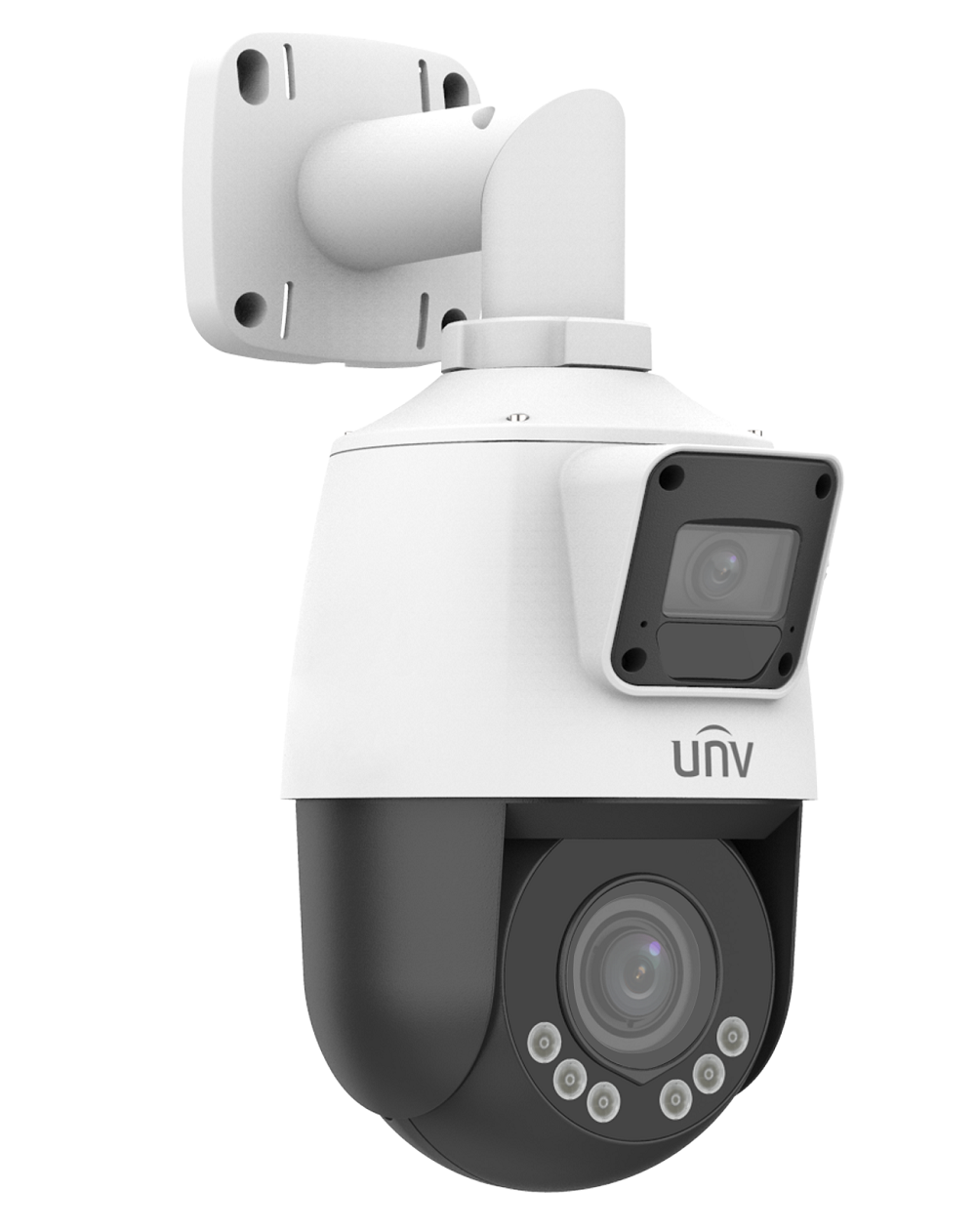 Видеокамера IP двухсенсорная Мини-PTZ, 1/2.8''CMOS, 2Мп(1920*1080) @25к/с, 2.8мм(обзорная камера)/2.8~120мм(поворотная камера) моторизованный объектив с автофокусировкой, 4X оптический зум, LightHunter 0.002 Лк @F1.6, ИК-подсветка до 10м (обзорная камера), ИК-подсветка до 50м (поворотная камера), LED-подсветка до 10м (поворотная камера), 120дБ WDR, 2D/3D DNR, Ultra 265|H.265|H.264|MJPEG, 2 потока, 2 встроенных микрофона, встроенный динамик, DC12V, PoE+(IEEE 802.3at), поддержка Micro SD карт памяти до 512 Гбайт, диапазон панорамирования 0° ~ 345°, диапозон наклона -10° ~ 100°, кнопка сброса, IP66, -30°C~60°C