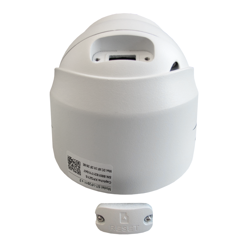Видеокамера ST-VF2911 PRO, цветная IP, Разрешение: 2,1 MP(1920*1080), с ИК подсветкой, детектор движения, детектор человека, обнаружение закрытия объектива, обнаружение вторжения в зону, 3 приватные зоны/ROI/зеркалирование, Купольная, Фокусн. расст.: 2.8 мм (Гор. 94°/Верт. 50°/ Диаг. 109°), Сенсор: 1/3" Progressive Scan CMOS, Дальн. ИК подсветки: до 35 м, Светочувствит. (мин. освещ.): 0,05 Lux (цвет) / 0 Lux (ч/б c IR), Кодек сжатия: H.264/H.264+/H.265/H.265+/MJPEG (только второй поток) /JPEG, Кодек сжатия аудио: G.711 A/U, AAC, Аудио вход/выход: Встроенный микрофон/-, Налич. слота для SD (типы поддерж.карт): microSD , Макс. объем SD: до 512Gb, Напряжен. питания: 12В, PoE: 802.3af (вариант А/В), ИК-фильтр: Механический, Функц. улучш. изобр.: BLC /DWDR /AGC / MGC /2D/3DDNR /HLC/AWB /MWB, Smart IR: есть, CV380, IPEYE, Кол-во к/с: 30 к/c, Регулир. кронштейна: 3D-Ось, Раб. темп.: -50…+60°С, Степень защищен./вандалостойкость: IP67 / -, Материал корпуса: Металл.